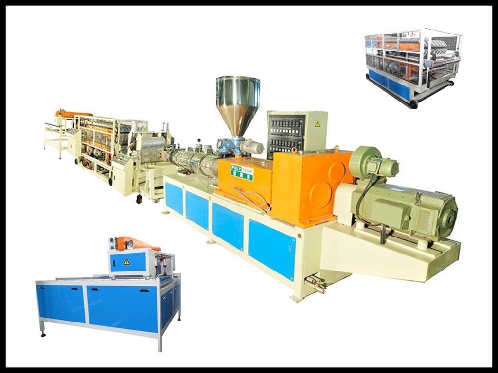 PVC Plastic Glazed Roof Tile Making Machine / Plastic Sheet Extrusion Line Quick Detail: The PVC plastic glazed roof tile making machine is mechanotronics, with the advantages of: 1) high production efficiency; 2) reasonable structure compact; 3) convenient operation and maintenance 4) long use life etc. Competitive Advantage: The device has cone hosts,co-extrusion machine,adjustable divider,hanger-style flat die,embossing press-ray machine,molding machine,horizontal cutting